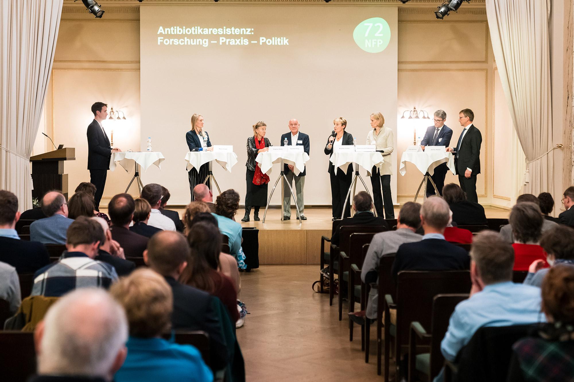 Améliorer l’efficacité des antibiotiques, diminuer les résistances : Les chercheurs du PNR 72 ont présenté de nouvelles connaissances et en ont discuté avec des représentants de la pratique et de la politique.